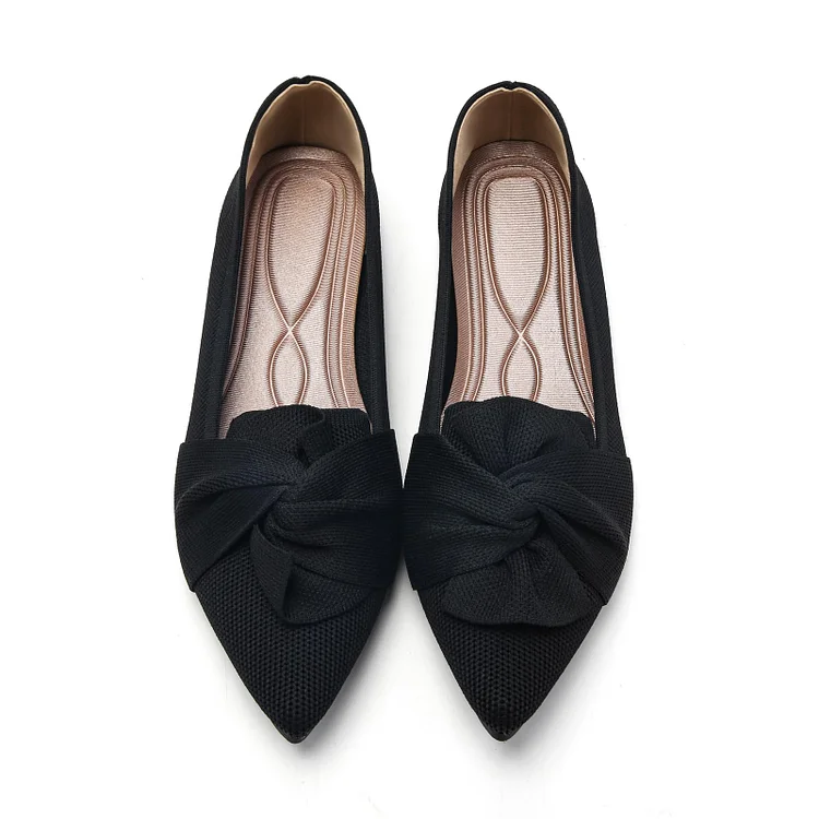 Flats for Womens Pointed Toe Ballet Flats with Bow Comfortable Knit Dressy Flats